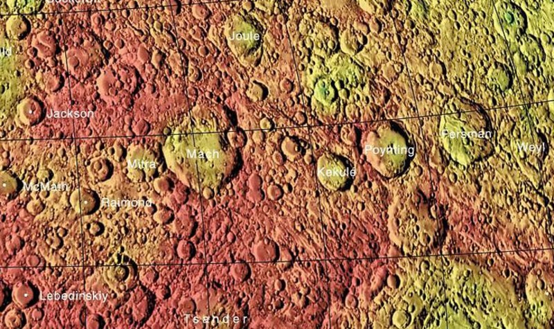 impacts. The interior of Mach is marked by several small